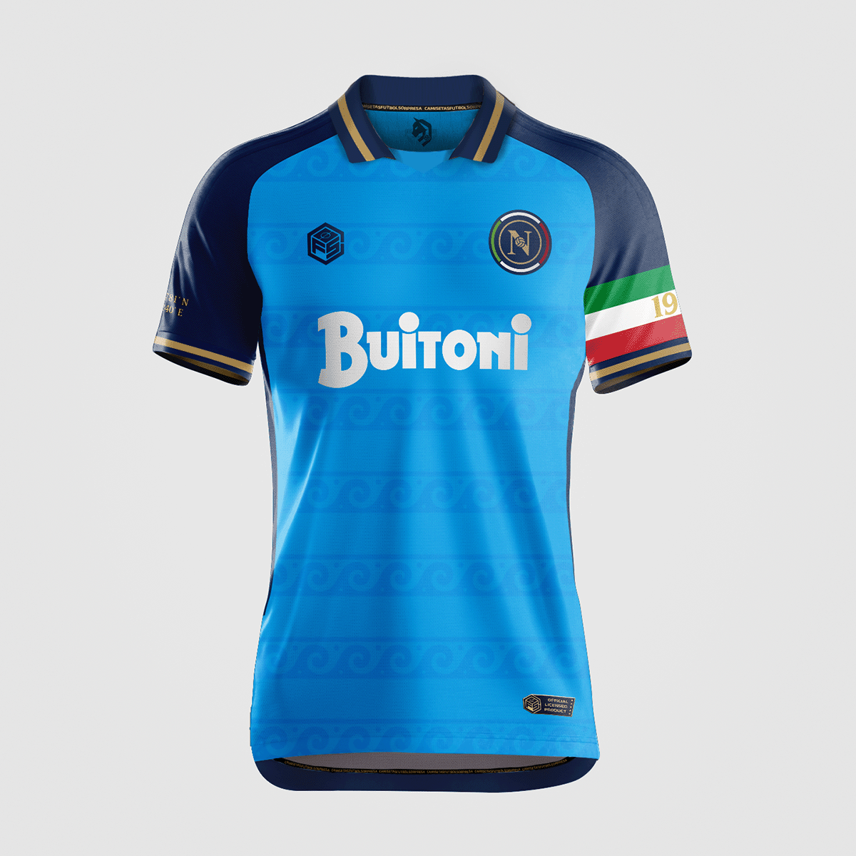 Presentamos la Partenopei, una camiseta exclusiva diseñada por Camisetas Fútbol Sorpresa, inspirada en los históricos diseños del Napoli.