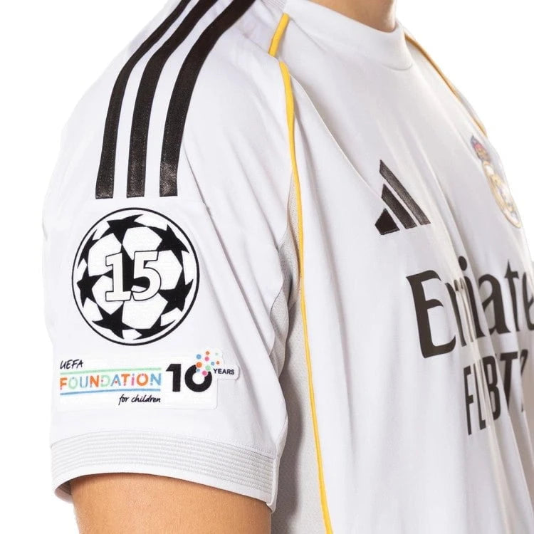La velocidad se une a la historia. Esta camiseta adidas de la primera equipación del Real Madrid para la temporada 2025-2026 está inspirada en la última renovación del Santiago Bernabéu, reflejando la elegancia y el carácter imponente del estadio que ahora también es hogar de Kylian Mbappé.